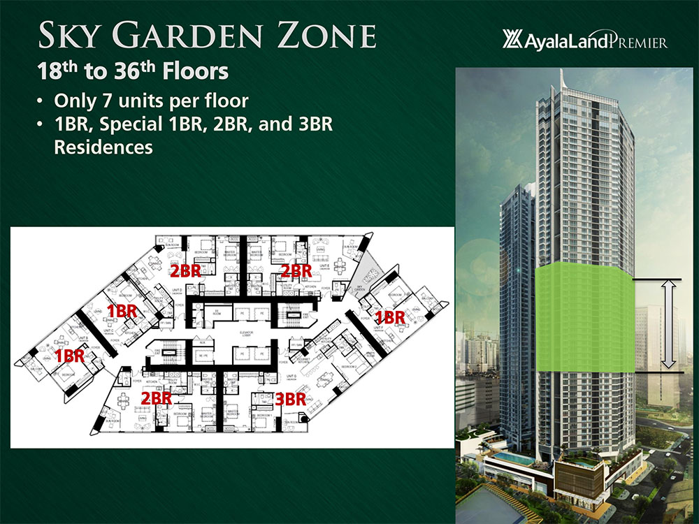 Garden Towers presents a sublime statement on living naturally at the heart of Ayala Center. Master planned a s a 9,010 sqm two-tower residential address, Garden Towers elevates a ground level garden experience to high above the city: beginning with a seamless integration into Palm Promenade, Glorietta's landscaped concourse; an astonishing green lobby core welcoming residents home; lush areas for convergence at two-floor intervals until the highest residential floor.