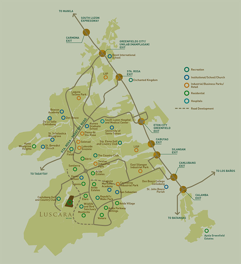 Accessible via South Luzon Expressway through Mamplasan*, Sta. Rosa and Eton Exits, residents will benefit greatly from quick access to schools, recreational facilities, business, and commercial centers of NUVALI.